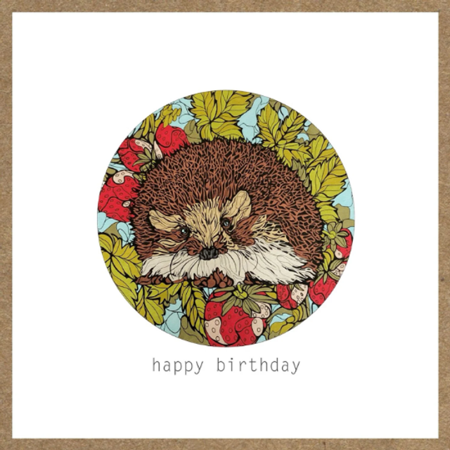 Hedgehog Birthday card. The design for this card originates from my art, starting as a black and white fine liner drawing it is then coloured in ink pens and digitally edited, creating what you see.